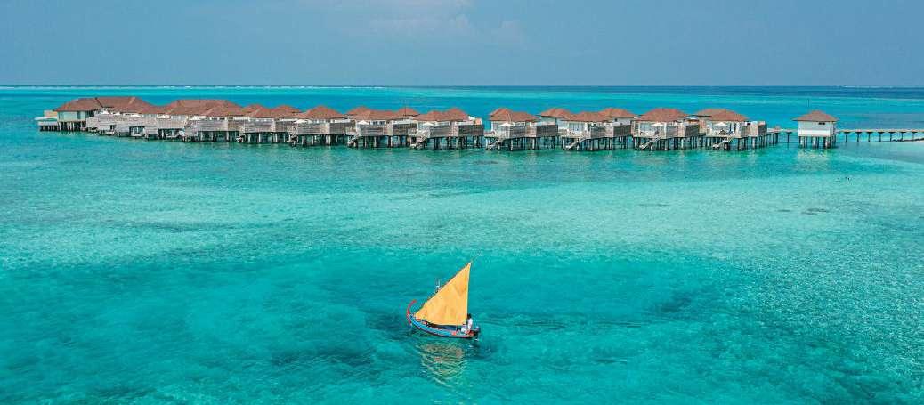Taking its name from the local Dhivehi word for ‘cheers’, Ambaa is a joyful toast to life, connection and memorable moments. Every Monday, Wednesday and Friday, between 4:00 pm and 6:00 pm, guests staying in one of the resort’s Over Water Villas or exclusive two- and three-bedroom Sunset Over Water Pool Residences can watch the horizon for the yellow sail of the Ambaa boat gliding across the turquoise lagoon. Designed in the style of a traditional Maldivian dhoni, once used for fishing and island transport, the vessel celebrates local heritage with a contemporary twist.