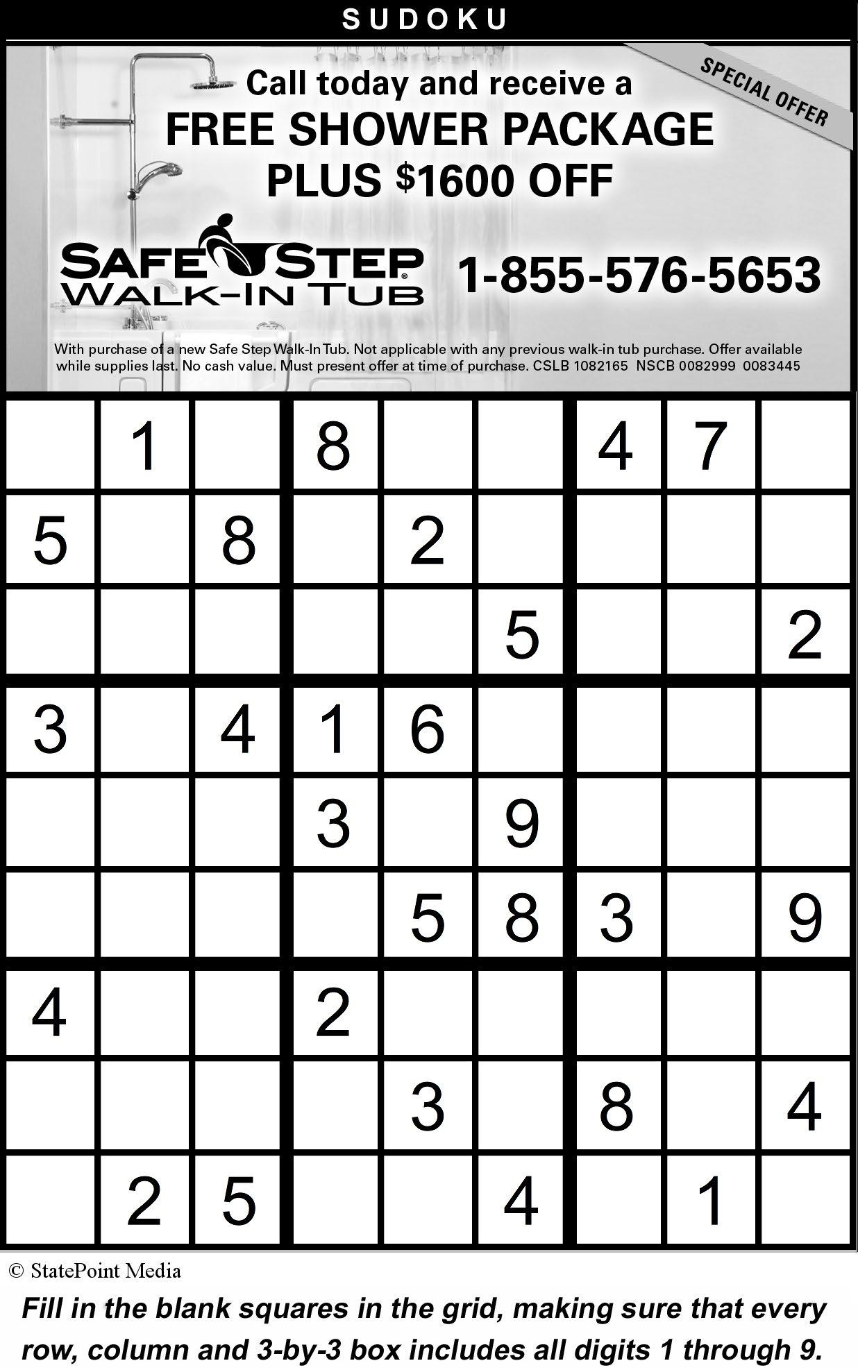 Safe Step. North America’s #1 Walk-In Tub. Comprehensive lifetime warranty. Top-ofthe-line installation and service. Now featuring our FREE shower package and $1600 Off for a limited time! Call today! Financing available. Call Safe Step 1-877-852-0368