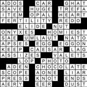 with caution; not necessarily the opinions of the editorial staff. THEME: U.S. PRESIDENTS ACROSS 1. Biased perspective 6. Male sibs 10. Monday Night Football audience 14. Tapiridae representative 15. Rock opera version of “La BohËme” 16. Object of worship 17. Opposite of alpha 18. ____ Spumante 19. Novice 20. *Unanimously elected President 22. Gusto 23. Eggy drink 24. Jig music, pl. 26. Stashed in a hold 30. Penniless 32. Wood turning device 33. Toll payment, e.g. 34. Not slouching 38. Like nay-sayers 39. Of many years 40. Malaria symptom 41. Instagram post 43. River, in Spanish 44. Bell-bottoms bottom 45. Dodge 47. Unexpected 48. The Cat in the Hat’s headgear (2 words) 51. Campbell’s container 52. International Civil Aviation Organization 53. *President Hayes’ first name 60. “Through” in a text? 61. Pelvic bones 62. Plural of #54 Down 63. Andrew Sean Greer’s 2018 Pulitzer Prize winner 64. Reverse action 65. Mother-of-pearl 66. *Lake off Ohio, the state known as “the Mother of Presidents” 67. Baseball’s “The Say Hey Kid” 68. Navigate DOWN 1. *Present tense of #26 Across 2. Tibetan priest 3. “Singes” in “La PlanËte des singes” 4. Nearly 5. Apprentice 6. Name on apple cider vinegar bottle 7. R in R&R 8. Cognizant of 9. “Sophie’s Choice” protagonist 10. *F in JFK 11. Bye, to Emmanuel Macron 12. Relating to Scandinavia 13. Casino bandits 21. Sign of assent 25. *Civil