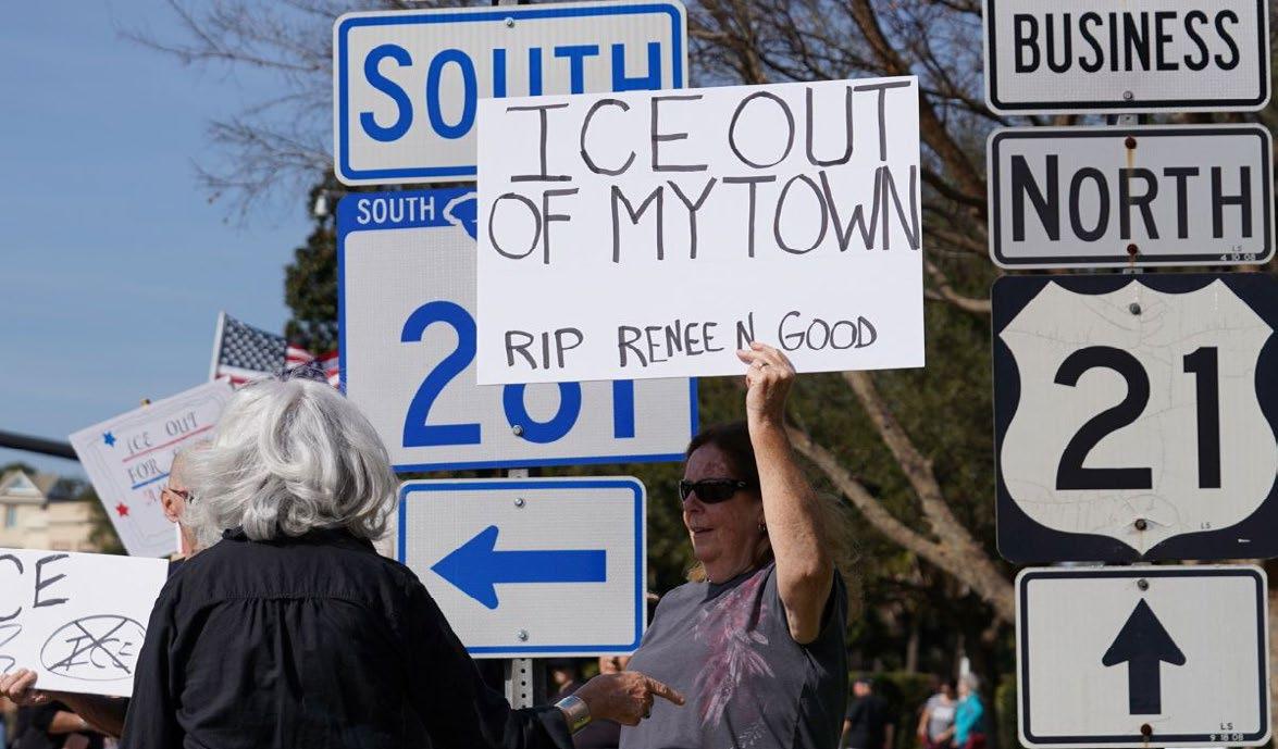 Saturday, Jan. 10, in front of Beaufort City Hall at the intersection of Boundary Street and Ribaut Road to protest the Wednesday, Jan. 7 killing of 37-year-old Renee Good by a U.S. Immigration and Customs Enforcement (ICE) agent in Minneapolis.