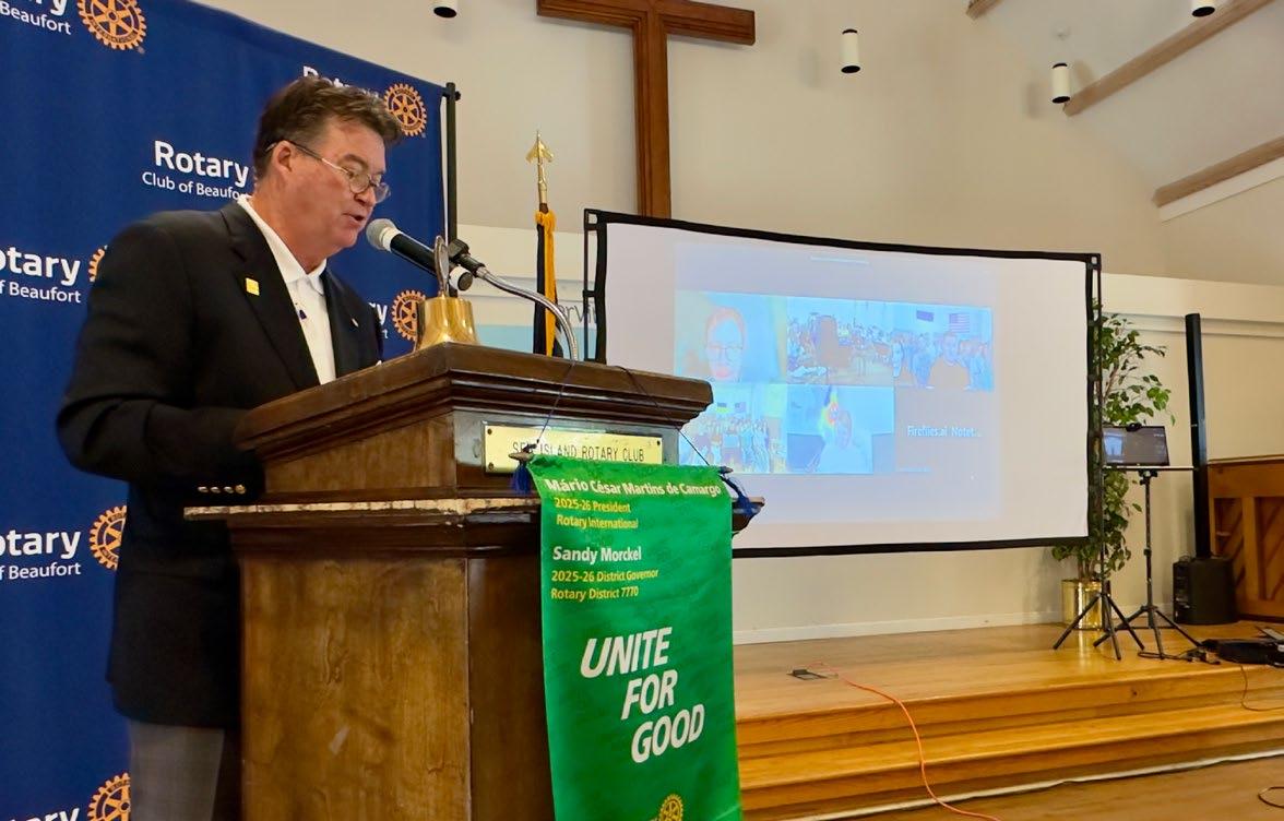 The area’s three Rotary Clubs — Rotary Club of Beaufort, Sea Island Rotary Club and Lowcountry Rotary Club — organized a ZOOM video call between a joint meeting of their members gathered in the Friendship Hall of Sea Island Pres-