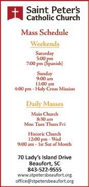 1001 Bay St, Beaufort, SC 29902 open Tues.-Sat. noon to 5pm, Sun. by chance furniture, home decor & more (843) 379-4488 Allison & Ginny DuBose, Owners aldubose@yahoo.com FURNITURE / HOME DECOR GARDEN CENTER 1 Marina Blvd. • Beaufort • 843-521-7747 www.LowCoGardeners.com • Mon-Sat 8-6 Retail Garden Center Serving Beaufort & LowCo Areas Visit Our Retail Garden Center Plants • Flowers • Gifts • Coffee Other Services Include: Plant Design • Consultation Install • Landscape Maintenance PRESSURE WASHING Pressure Washing • Window Cleaning Soft Roof Wash • Residential & Commercial 843-522-3331 CHSClean.com Locally Owned and Operated Furbulas Dog Grooming and Pet Sitting Brittany Riedmayer 843-476-2989 • 843-522-3047 furbulasdoggrooming@hotmail.com Member of National Dog Groomers Association of America PET SERVICES ROOFING DA Roofing Company Donnie Daughtry, Owner Call us for ALL of your roofing needs. New Construction, Residential and Commercial, Shingles, Metal, Hot Tar & Hydrostop. All repairs and new additions. FREE ESTIMATES 843-524-1325 PEST CONTROL residential commercial real estate 843-379-0185 www.BeaufortPestControl.com MOBILE HOME INSURANCE John D. Polk Agency info@polkagency.com 843-524-3172 INSURANCE Manufactured Homes • Cars • Boats RV's • Homes • All Commercial CALL FOR A QUOTE TODAY! REAL ESTATE AGENTS 613 Carteret Street, Beaufort, SC 29902 Reach Buddy at 843-441-2933 Buddybrownrealestate@yahoo.com Reach Sally at 843-252-1414 Sallygermer@yahoo.com Buddy Brown Sally Germer COINS AND COLLECTIONS WANTED : Southeastern Coin Exchange FL, GA, & the Carolinas. Call “Guy” at 843-986-3444. Free appraisals. Highest prices paid. Over 60 years experience. Licensed. Private appointments available. COINS & COLLECTIONS P L A C E YO U R A D I N PLACE YOUR AD IN 97 S C NEWSPAPERS S.C. NEWSPAPERS and reach more than 2 1 million readers more 2.1 using our small space display ad network our small space ad network South Carolina Newspaper Network Randall Savely 888 727 7377 Randall 888.727.7377 scnewspapernetwork com scnewspapernetwork.com Statewide or regional buys available Statewide or regional available E-Edition Digital Newspaper YOURISLANDNEWS.COM A customer favorite! Enjoy the classic newspaper format in a digital environment. Published every Thursday, the E-Edition is a digital replica of the print newspaper, with all of the same news and advertising content, on your computer, tablet or smartphone. START READING TODAY issuu.com/theislandnews Email Amanda Hanna (amanda@lcweekly.com) to place your Service Directory ad here! YOUR AD HERE Wells Fargo Advisors is a trade name used by Wells Fargo Clearing Services, LLC, Member SIPC, a registered broker-dealer and non-bank affiliate of Wells Fargo & Company. ©2022 Wells Fargo Clearing Services, LLC. CAR-0523-02112 • NOT FDIC Insured • NO Bank Guarantee • MAY Lose Value Investment and Insurance Products: LLC, Member SIPC, a registered broker-dealer and non-bank affilia Fargo & Company. ©2022 Wells Fargo Clearing Services, LLC. CAR-0622-03879 Building wealth takes hard work and passion. So should managing it. As successful as you are, we know there’s still more you want to do. We’ve been helping our clients for more than 125 years, caring for trillions of their hardearned assets. Find out why so many people trust our advisors to help them manage their wealth with the care it deserves. Call us today. Steve von Clausburg Branch Manager, Vice President – Investments Whitney McDaniel, CFP® AAMS® Financial Advisor, Vice President – Investments Katie C. Phifer, CFP® , RICP ® Financial Advisor, First Vice President – Investment Officer Claudia Hahne Client Associate Wells Fargo Advisors 211 Scott Street Beaufort, SC 29902 Phone 843-524-1114 2023 BEAUFORT COUNTY HOUSING SYMPOSIUM • Home Buying Process • How to Get Qualified • Loans and Grants • Interior Decorating • Home Maintenance • Free Wills Clinic • Heirs’ Property Solutions • Forestry • And More! TOPICS SATURDAY June 3, 2023 8:30 AM - 4:00PM TECHNICAL COLLEGE OF THE LOWCOUNTRY