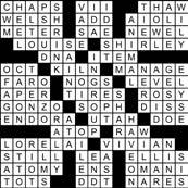 THEME: AT THE AIRPORT ACROSS 1. Foundation 6. Dashboard acronym 9. Bonny one 13. Pleasant smell 14. Metal-bearing mineral 15. Salk’s nemesis 16. Kidney-related 17. Christopher Lloyd’s ____ Brown 18. Investigative report 19. *Something to claim 21. *Declaration station 23. Argonaut’s propeller 24. C in TLC 25. Scot’s woolen cap 28. Sushi restaurant soup 30. *Exclusive accommodation 35. Was in the hole 37. Highest volcano in Europe 39. Angry growl 40. Dry riverbed 41. “____ go!” 43. Adored one 44. *Jong of “Fear of Flying” fame 46. Lowly laborer 47. Cone-shaped quarters 48. Time between classes 50. Dirty air 52. Hi-____ 53. Skiers’ ride 55. Scheduled to arrive 57. *”____ for takeoff” 61. *Frost removal 65. Luxurious sheet fabric 66. It would 68. Synagogue scroll 69. Barely sufficient 70. General Services Administration 71. Movie “Home ____” 72. Reason to cram 73. Negative vote 74. Washer setting DOWN 1. Prickle on a fence 2. Equal to pi times r squared 3. Cheap form of payment? 4. Insect in adult stage 5. Dar es ____, Tanzania 6. Traveled on a horse 7. Not amateur 8. Hajj destination 9. Like kittens’ mittens 10. “The Sun ____ Rises” by Hemingway 11. Thailand, once 12. Tofu bean, pl. 15. Walkways 20. “Peer Gynt” composer Edvard ____ 22. Dot-com address 24. Wrestling match, e.g. 25. *Air traffic control feature 26. Fully informed 27. Army doctor 29. Traffic sign 31. ____ of measurement 32. Rock bottom 33. Search blindly 34. Island off Manhattan 36. Vegas cube 38. H or O in H2O, e.g. 42. Opposite of cathode 45. Obliquely 49. Knightly title 51. Slash’s instrument 54. Make believe 56. Cause for food recall 57. Attention-getting sound 58. Gym class test? 59. *Captain’s announcement, plural acronym 60. Porter order 61. June 6, 1944 62. Type of #14 Across 63. Grannies, in UK 64. Clarified butter 67. *PreCheck org.