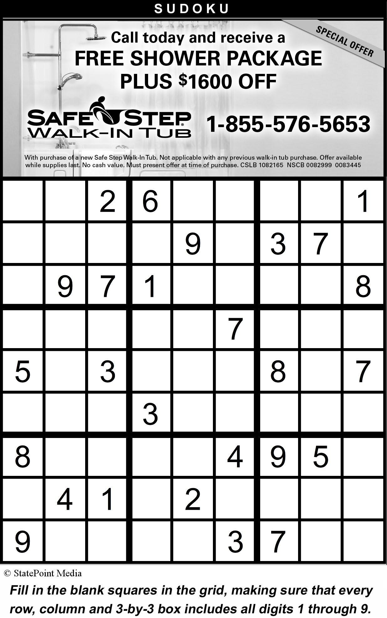 Safe Step. North America’s #1 Walk-In Tub. Comprehensive lifetime warranty. Top-of-the-line installation and service. Now featuring our FREE shower package and $1600 Off for a limited time! Call today! Financing available. Call Safe Step 1-877-852-0368