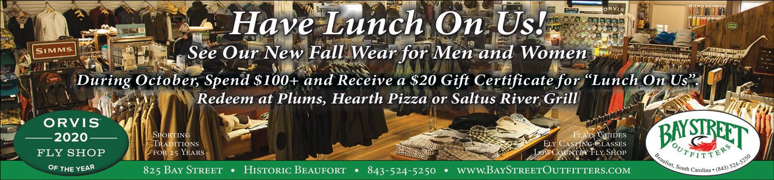www.LowcountryRealEstate.com 820 Bay Street Beaufort, SC 29902 843.521.4200 MOSSY OAKS | MLS 176346 4BDRM | 2B | 1716sqft David Polk 843.321.0477 $355,000$119,000 CELADON | MLS 174219 .17acre Homesite | Community Amenities Amy McNeal 843.521.7932 $470,000 COMMERCIAL OPPORTUNITY MLS 177922 | 2135sqft | Plenty of Parking Excellent Location Laura Blencoe 843.321.1615 LUXURY NEW CONSTRUCTION MLS 174089 | 3BDRM | 2.5+B | Water Views Elevator | Secured Parking Edward Dukes 843.812.5000 $1,850,000 – $1,950,000 I am Marilyn Harris, and I am running to represent you on the Beaufort County Council in District 2. County Council is a full-time job that requires a representative who is available full time. I am informed, energetic, ready, and available to you on Day One. I hope you will join me in driving some much-needed change in our District and County. To learn more about me and the issues visit my website votemarilynharris.com. Vote Marilyn Harris for Beaufort County Council District 2 on November 8th. Any voter can visit an early voting center and vote Monday through Saturday from 8:30 a.m-6:00 p.m. from October 24th through November 4th PAID FOR BY FRIENDS OF MARILYN HARRIS CAMPAIGN IT’S A BRAND NEW DAY! 136 Sea Island Parkway Open Monday – Friday 9am-6pm Saturday 10am-5pm & Sunday 11am-3pm Online ordering for easy pick up or delivery 843-379-3303 • contact@beaufortkitchen.com Available for pick up Tues, Nov. 22nd & Wed, Nov. 23 Check our website, thebeaufortkitchen.com beginning November 1st for ordering options, prices, and more details. Thanksgiving Menu: Butternut Squash Bisque Crab Bisque Oyster Dressing Cornbread Dressing Mashed Potatoes Bourbon Sweet Potato Casserole Potatoes Au Gratin Creamy Mac-n-Cheese Butternut Squash Risotto Balsamic Brussel Sprouts with Cranberries & Pecans Squash Casserole Roasted Fall Root Vegetable Medley House Gravy Cranberry Chutney Pumpkin Pie, Pecan Pie, Bourbon Bread Pudding