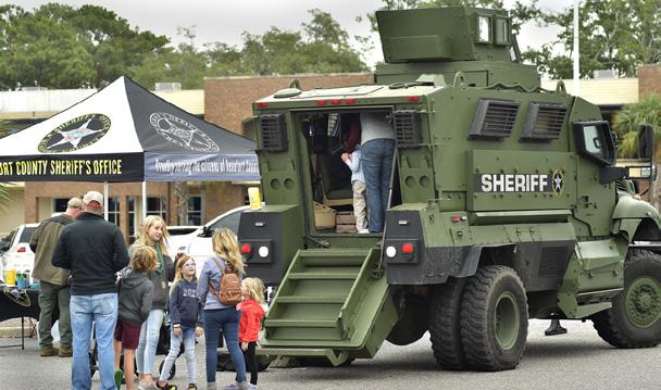 One of the trucks on display during the 2021 Annual Touch a Truck event was Beaufort County Sherrif’s Office’s MRAP, Mine Resistant Ambush Protected, transport. Bob Sofaly/The Island News