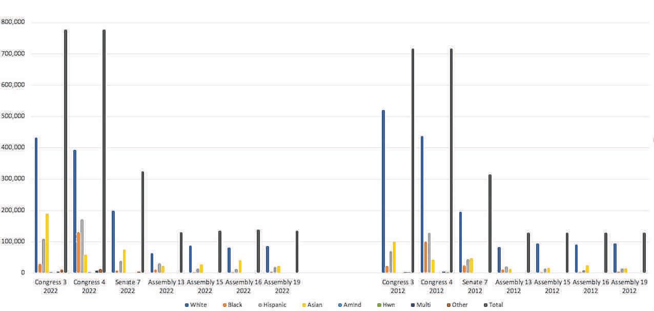 Both the 3rd and 4th Congressional Districts had an 8.25% increase in total population over the past decade, growing from more than 717,700 residents to 776,971 in 2022. The White population in both