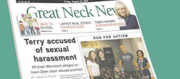 GN2 The Great Neck News, Friday, October 28, 2022 TO REACH US GREAT NECK NEWS (USPS#227-400) is published weekly by Blank Slate Media LLC, 22 Planting Field Road, Roslyn Heights, NY, 11577, (516) 307-1045. The entire contents of this publication are copyright 2022. All rights reserved. The newspaper will not be liable for errors appearing in any advertising beyond the cost of the space occupied by the error. Periodicals postage paid at Williston Park, NY. POSTMASTER: Send address changes to the Great Neck News, C/O Blank Slate Media LLC, 22 Planting Field Road, Roslyn Heights, NY, 11577. MAIL: 22 Planting Field Road Roslyn Heights, NY 11577 SUBSCRIPTIONS: Sue Tabakin 516-307-1045 x206 stabakin@theisland360.com DISPLAY ADVERTISING: Steven Blank 516-307-1045 x201 sblank@theisland360.com CLASSIFIED ADVERTISING: Deborah Flynn 516-307-1045 x218 dflynn@theisland360.com EDITORIAL: Editorial Submissions: theisland360.com/submit-news/ • Deadline for submissions 5pm Mondays Event Submission: theisland360.com/local-events/ Great Neck News: Robert Pelaez 516-307-1045 x203 • rpelaez@theisland360.com New Hyde Park Herald Courier: Brandon Duffy 516-307-1045 x215 •