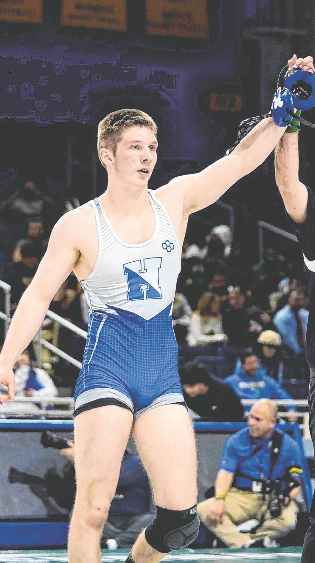 On February 11 and 12, Herricks entered the Nassau County/Section 8 Wrestling Championship at Hofstra University. The top fve Highlander place-winners from the previous week’s qualifer at Bellmore JFK competed in the event. Each of the 13 weight classes had approximately 26 wrestlers seeded according to this season’s performance.