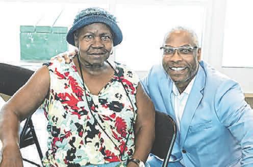 SUNY Old Westbury President Timothy Sams (right) congratulates Ann James of the Maintenance and Facilities Department on her more than 50 years of service to the campus.