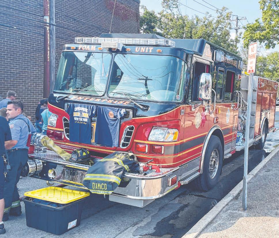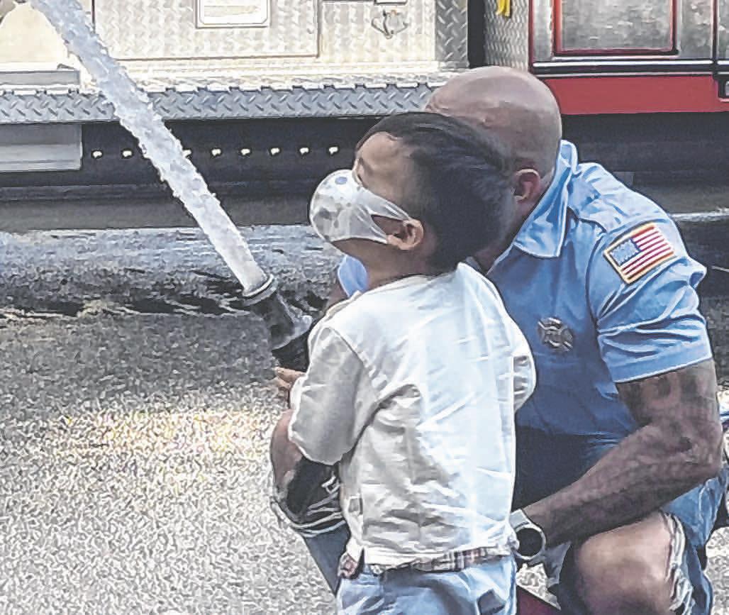 A young boy sprays a fire hose with help from the New Hyde Park Fire Department during the village’s 25th annual street fair. See additional photos on page 10.