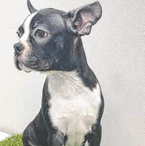A 4-month-old Boston terrier was stolen from its cage at The Left Paw in New Hyde Park Wednesday, police said.