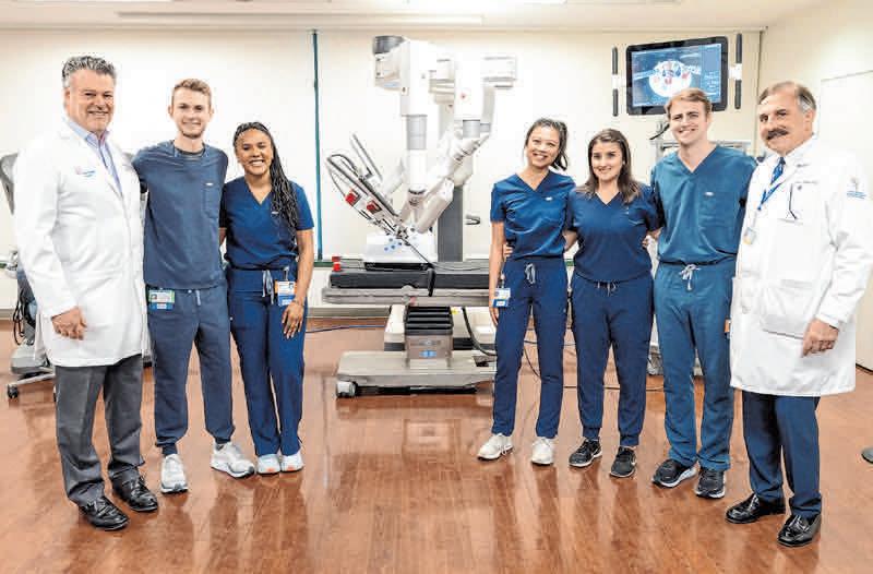 The military, in a joint efort with the Stanford Research Institute, frst developed robot-assisted surgery in the late 1980s. The da Vinci Surgical System became the frst robotic device approved by the FDA in 2000. Today, the da Vinci system is an innovative, state-of-the-art advanced instrumentation. The robot works as an extension of a skilled surgeon by replicating the surgeon’s hand movements in real-time and aiding with greater visualization, enhanced dexterity and greater precision. Besides honing the fne motor skills needed to manipulate da Vinci’s tentacle-like arms, the training has helped the students to better communicate and work together.