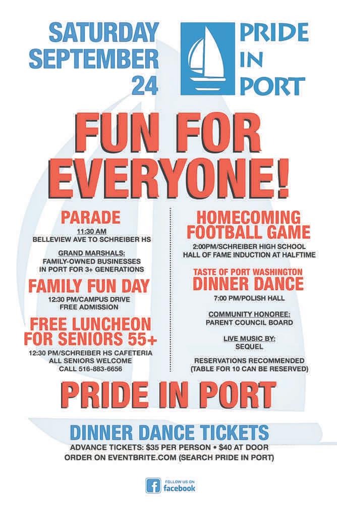 A range of events are scheduled throughout the day as part of Pride in Port celebrating the best of Port Washington. These include a community parade, homecoming football game and the “Taste of Port Washington” Dinner Dance.