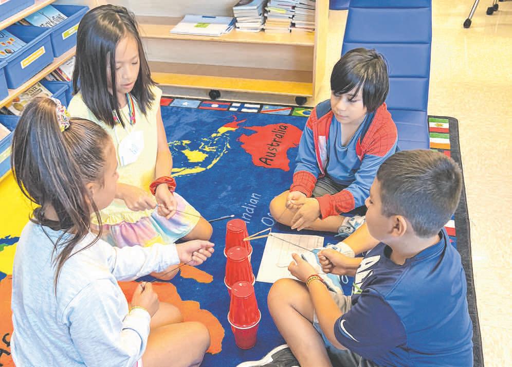 Fifth-grade students at Harbor Hill Elementary School began the school year with a variety of STEM projects that encouraged teamwork.