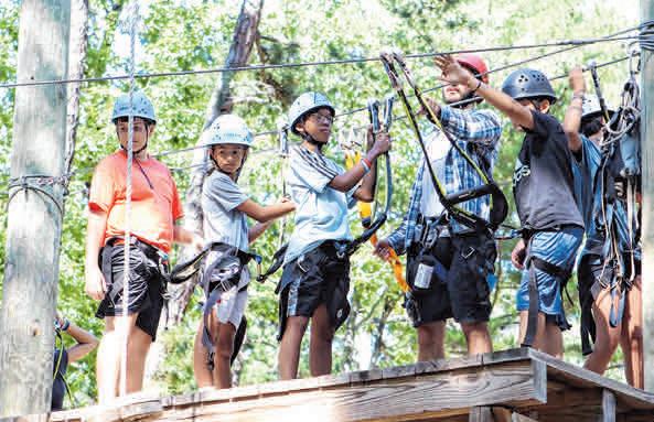 This weeklong outdoor education program uses coop erative learning and hands-on experiences to develop an atmosphere of team building that fosters leadership, efec tive communication, commitment and cooperation. The stu dents participated in group games, team-building activities, challenge courses (high and low elements), canoeing, pond ecology, archery, sports, survival skills and the famous swamp challenge course which was yet again a big hit with the stu dents. While participating in these amazing activities, stu dents made new friends, formed new relationships with their peers, gained self-confdence and learned to survive in nature while learning about the environment and the world around them. They proved they were able to survive of the grid with absolutely no technology for fve days. In addition to the daily camp programs, students experienced two nights of Cedar Run Wildlife Refuge Birds of Prey presentations.