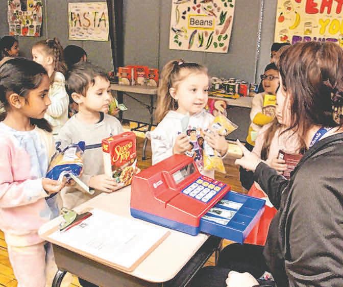 PHOTO COURTESY OF THE ROSLYN SCHOOL DISTRICT Kindergarten students making their purchases at the Heights Supermarket. See story on page 46.
