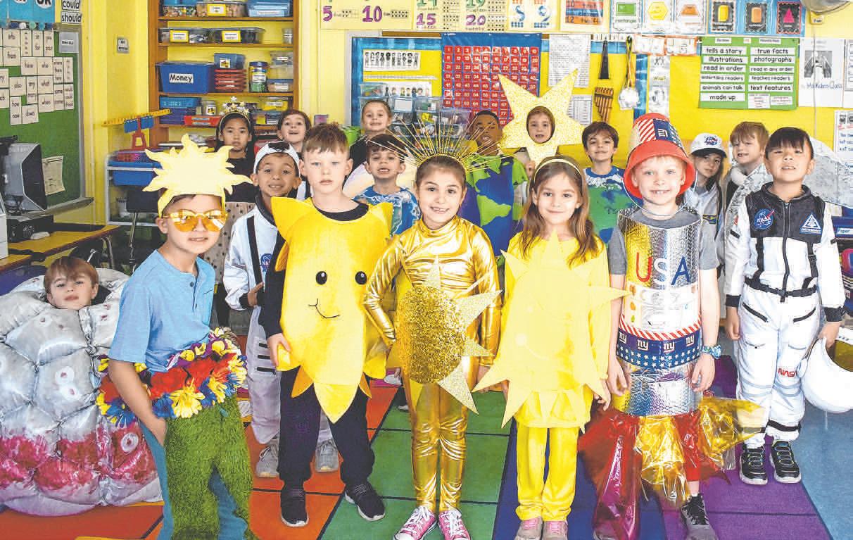 On April 4, frst graders at Glenwood Landing School took to the stage dressed in decorative “out-ofthis-world costumes” for their frst interdisciplinary Astronomy Celebration in front of their proud teachers, administrators, parents and family members.