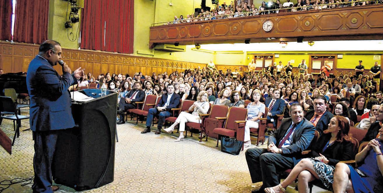On August 30, over 600 members of the Herricks School District administration, faculty and staf joined Superintendent of Schools Dr. Tony Sinanis in the high school gym for the annual opening day convocation, a spirited assembly celebrating the start of the new school year.