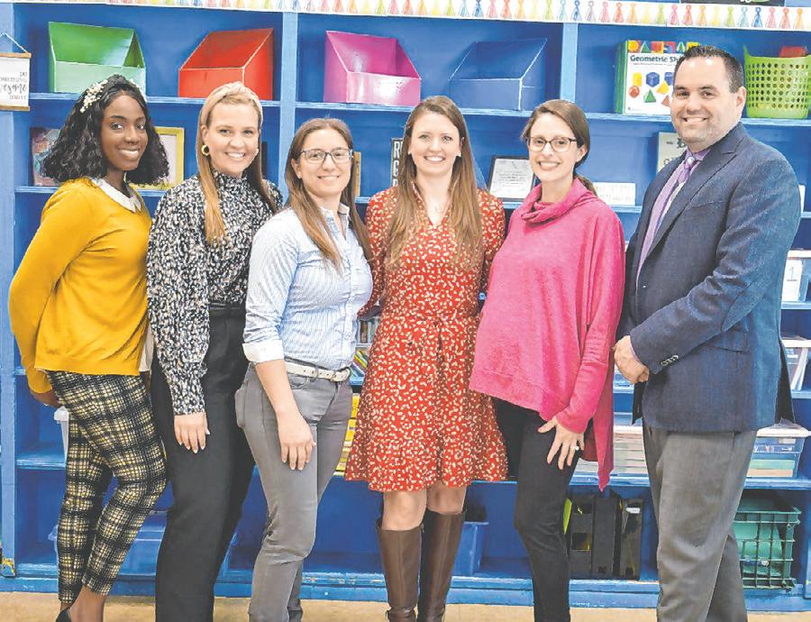 Middle School teacher Kerry Ann D’Angelo was named Nassau County Mathematics Teacher of the Year by the NCMTA. Instructional Leader Racquel Stephenson, left, Principal Amy Trojanowski, math teacher Melissa Fusco, math teacher and award recipient Kerry Ann D’Angelo, math teacher Lindsay Borges and Instructional Leader Steve Benner, right.