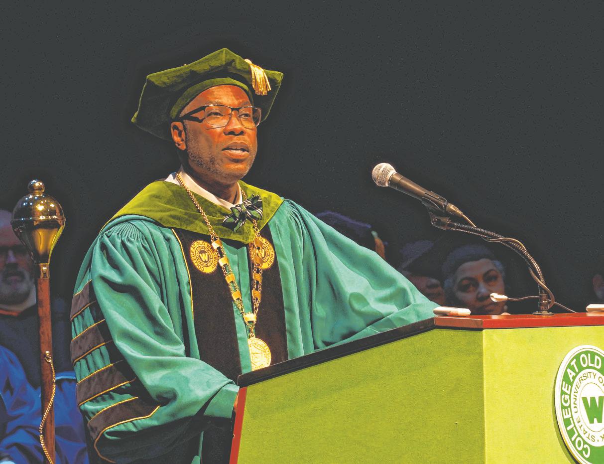 SUNY Old Westbury President Timothy Sams gives his inaugural address during ceremonies on April 14 making official his appointment as the sixth president of Long Island’s only public, liberal arts college.