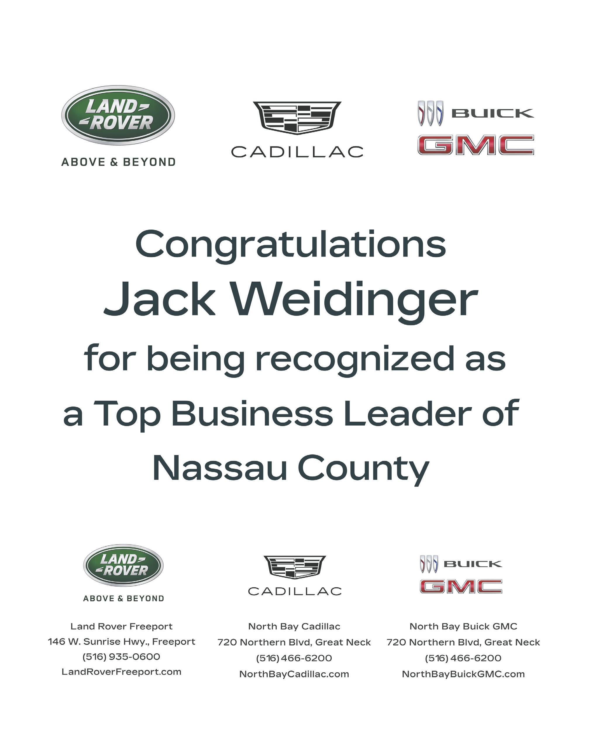 I own and operate the Weidinger Auto Group consisting of North Bay Cadillac Buick GMC in Great Neck, Jaguar Land Rover Freeport in Freeport, and other automotive operations on Long Island.