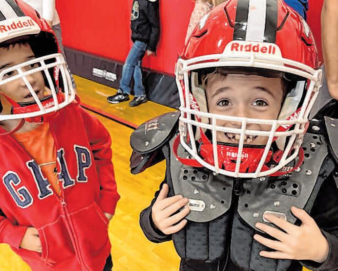 Seniors on the Mineola High School varsity football team visited fourth graders at the Jackson Avenue School to help teach and promote the sport.