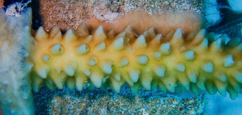 An egg mass laid by conch at CEI’s wetlab. Conch eggs laid at CEI’s wetlab, within their egg strand.