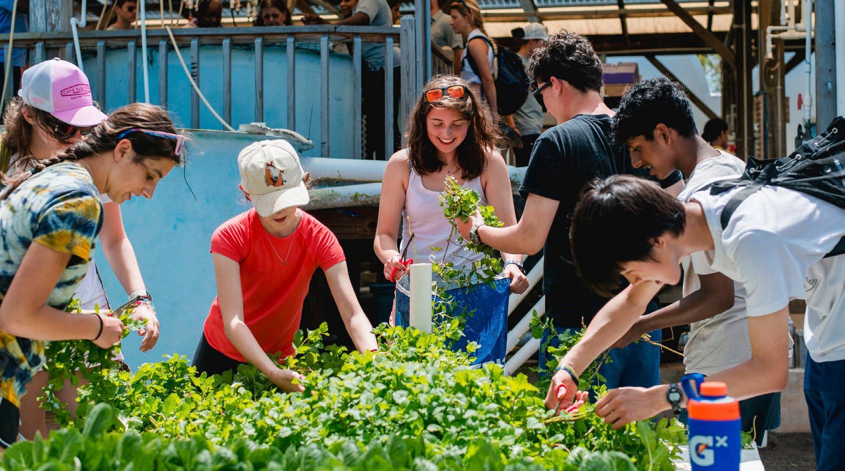 Visiting programs participate in a lettuce harvest.