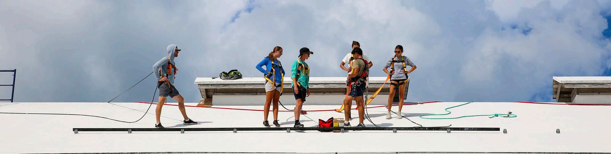 Students and faculty install a solar array on top of CSD.