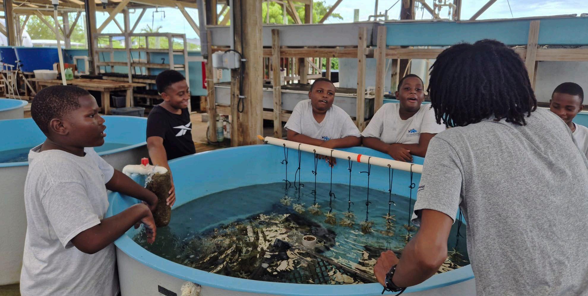 Students in the Queen Conch Research Project sharing knowledge about the conch in their care.