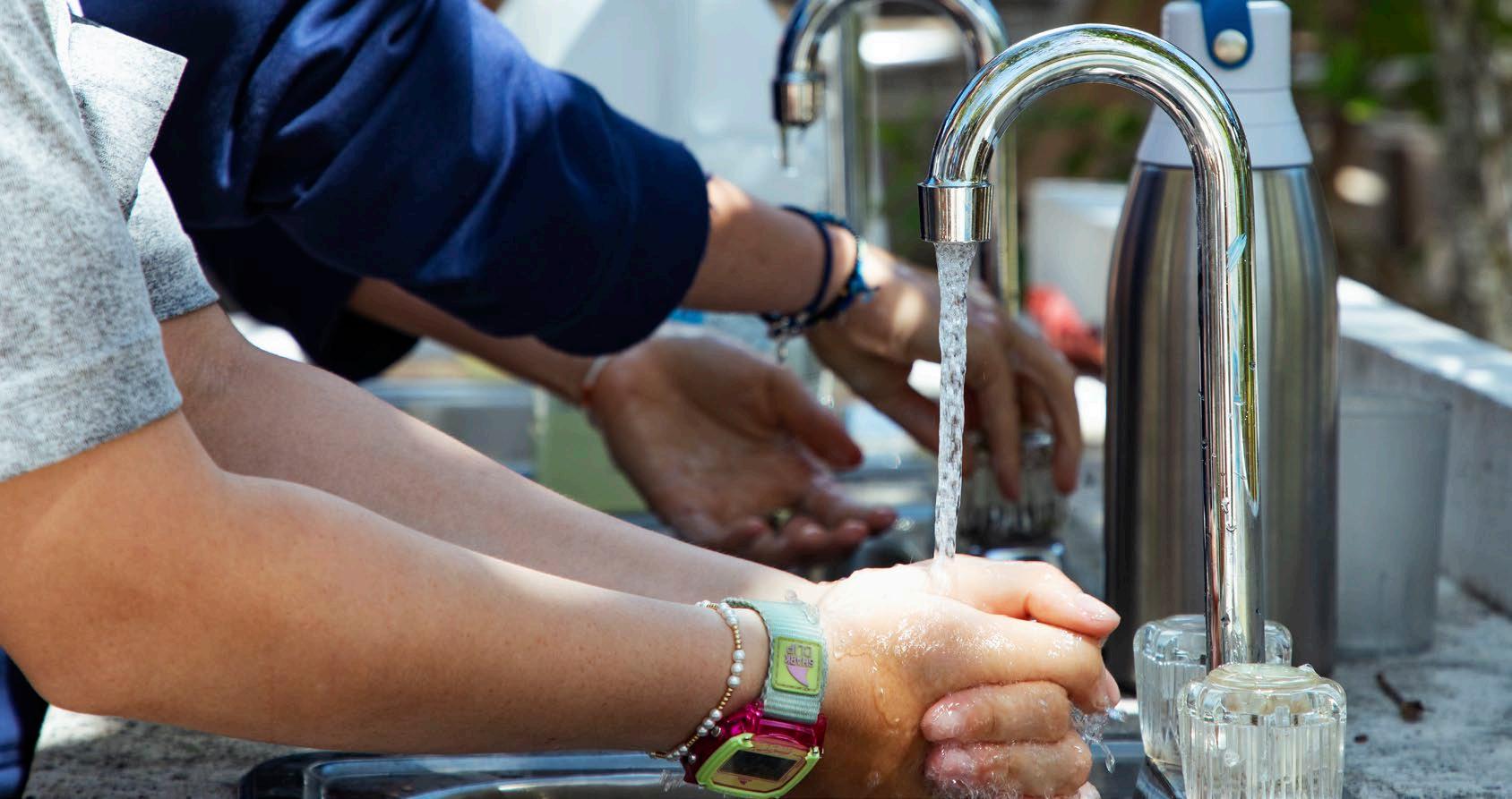 Students and staff wash hands and utilize water infrastructure on campus