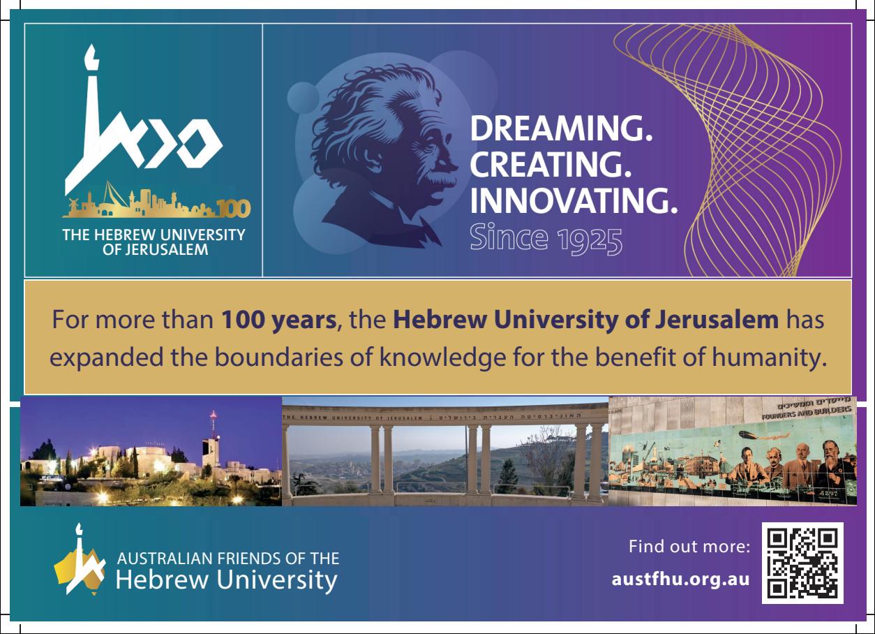 Except where expressly stated otherwise, content in The Melbourne Jewish Report is provided as general informations only. The articles in this paper have been contributed by a third party. The opinions, facts and any media content here are presented solely by the author, and The Jewish Report assumes no responsibility for them. It is not intended as advice and must not be relied upon as such. You should make your own inquiries and take independent advice tailored to your specific circumstances prior to making any decisions. We do not make any representation or warranty that any material in the papers will be reliable, accurate or complete, nor do we accept any responsibility arising in any way from errors or omissions. We will not be liable for loss resulting from any action or decision by you in reliance on the material in the papers. By reading the papers, you acknowledge that we are not responsible for, and accept no liability in relation to, any reader’s use of, access to or conduct in connection with the papers in any circumstance. Photographs submitted by individuals or organisations are assumed to be their property and are therefore not otherwise credited. All articles in this paper have received the expressed consent of the author to publish in this paper.