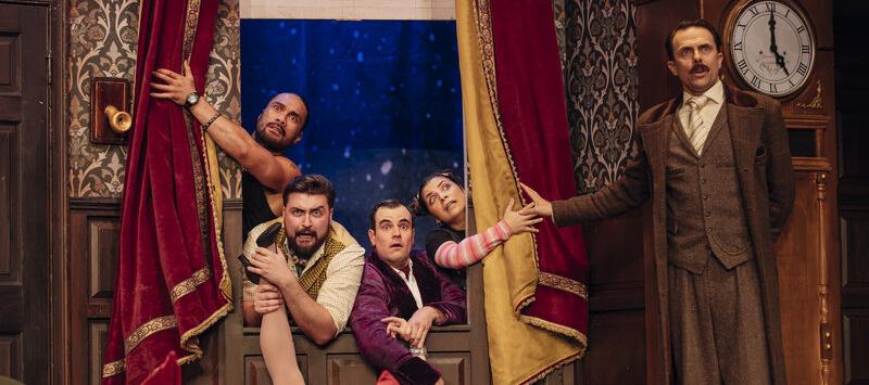 But there are also the one-liners, including those from the faux director of The Murder at Haversham Manor in introducing the show. And, again, when he returns, engaging the audience ahead of Act II.