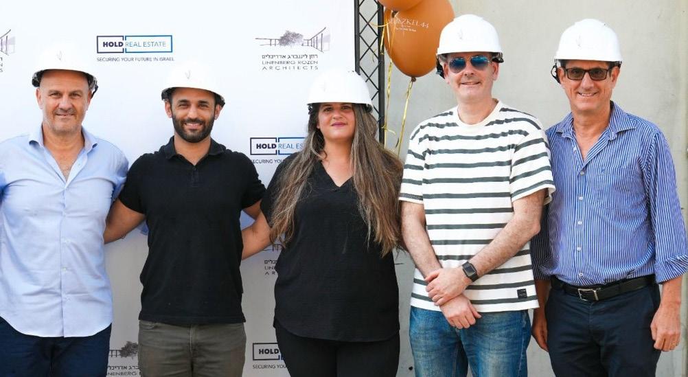 HOLD Real Estate CEO Ari Shapiro (far left) and managing director Julian Nathan (far right) with their executive team at the site of their new development in Florentine, South Tel Aviv (photo taken in May 2025)