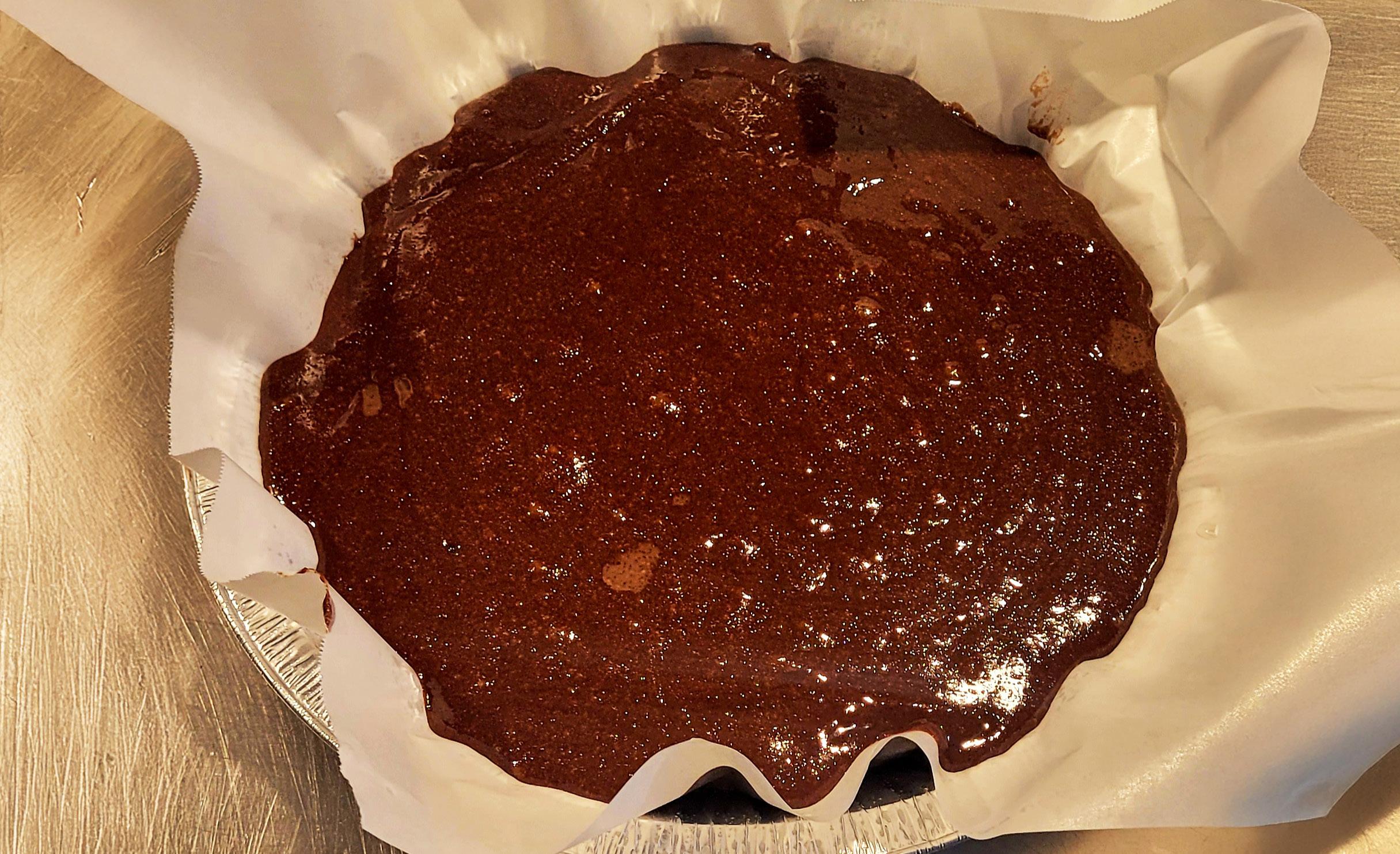 5: Split the mixture between the two trays and place in the oven and bake for 45 minutes. Test after that time with a cake tester. If it comes out wet, keep baking and check