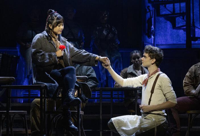 Abigail Adriano and Noah Mullins play young lovers in Hadestown (photo by Lisa Tomasetti)