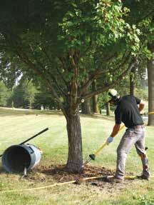 • Mulch around the base of young trees and shrubs to conserve moisture and control weeds.