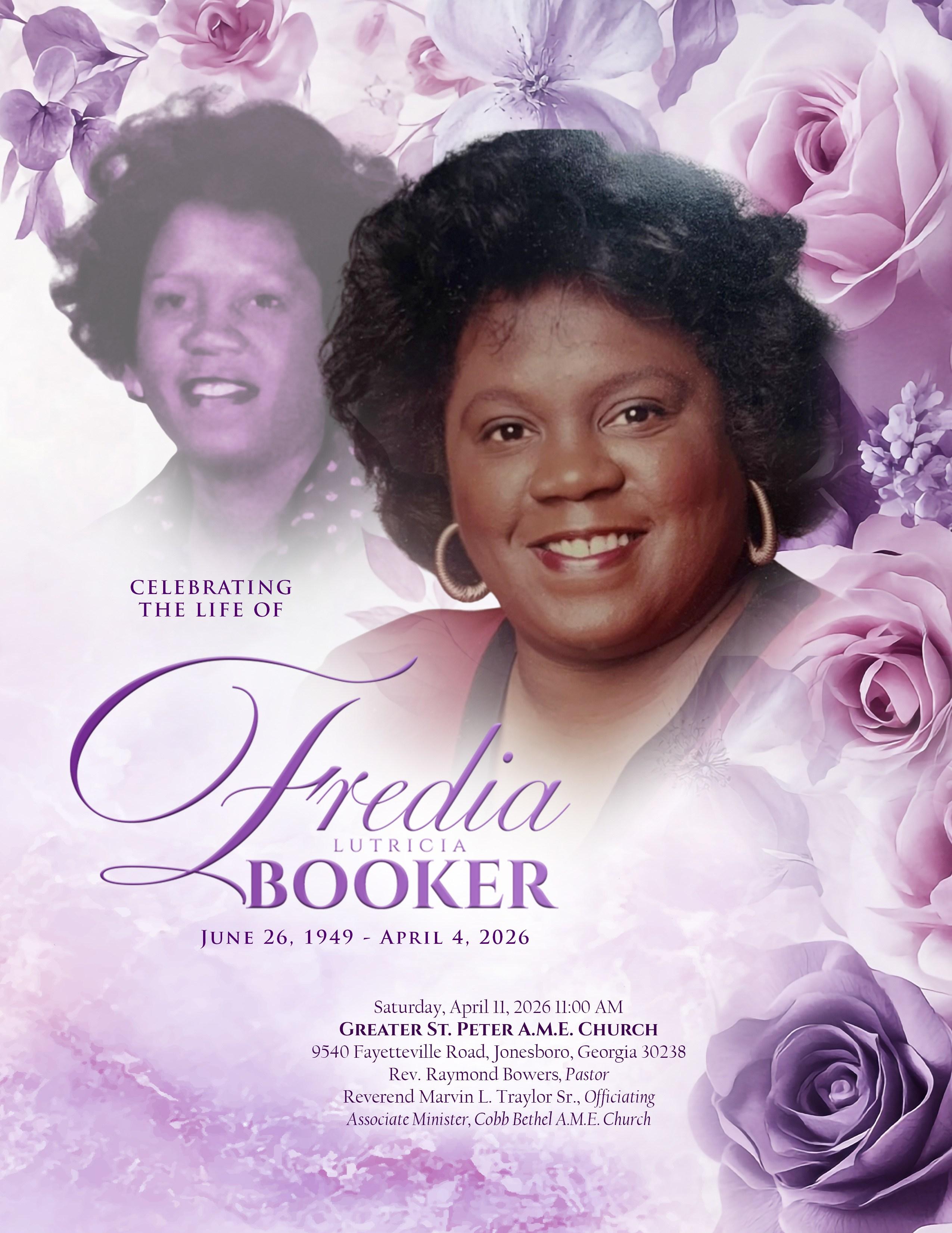 Fredia Lutricia Booker, affectionately known as “Lu” was born as a twin in Atlanta, Georgia on June 26, 1949, to the late Rev. John and Vivian Booker as the second of three children.