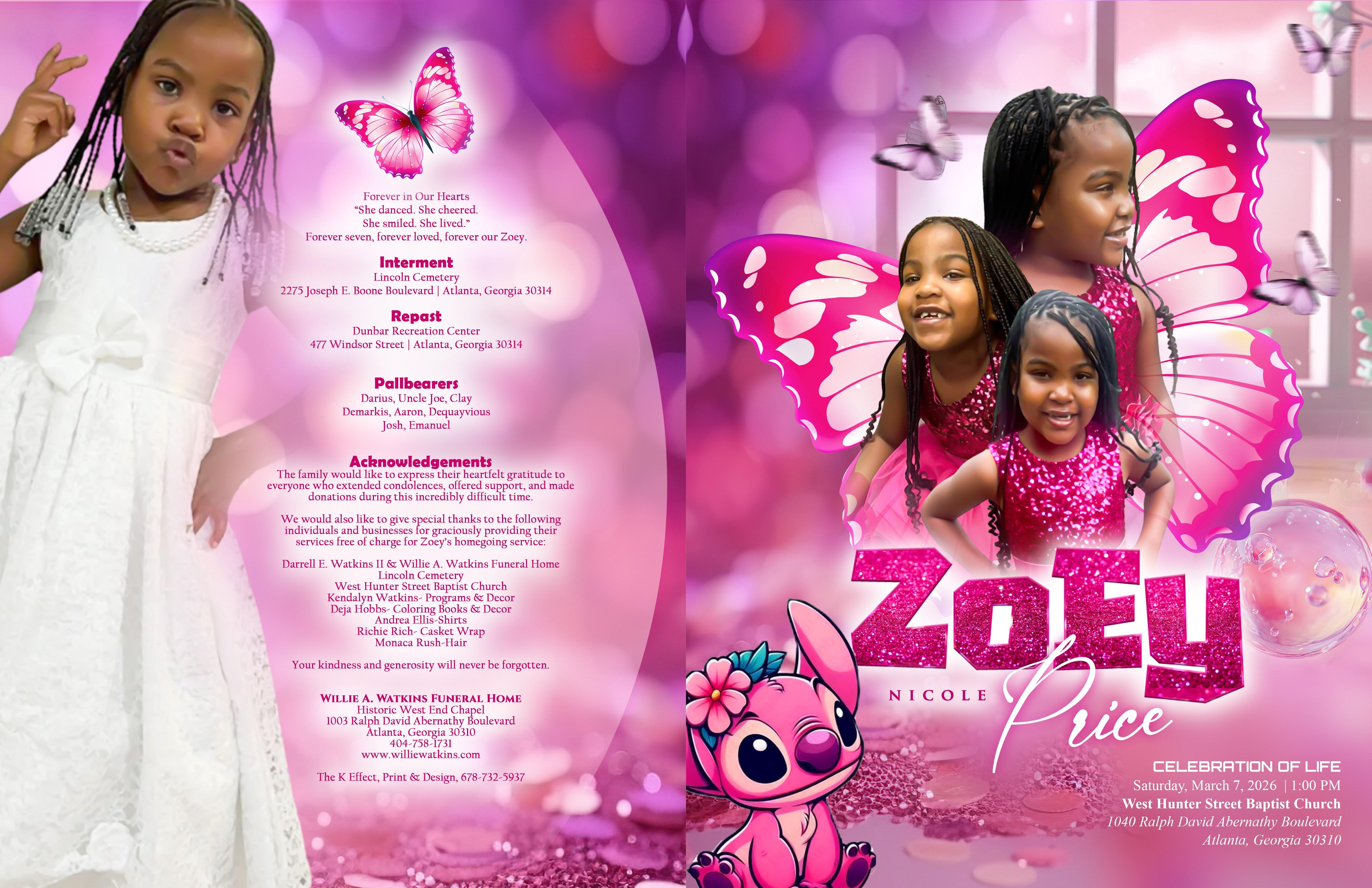 Princess Zoey N. Price Life Celebration Program