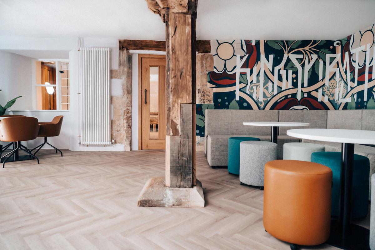 The Ivor Gurney Hall is one of King’s most characterful spaces and the school’s original 19thcentury schoolroom Extensively restored in 2015, the hall now showcases its impressive archbraced roof in a striking multi-coloured scheme inspired by the Gothic Revival movement. The result is a unique and visually rich venue, combining historic architecture with a flexible, contemporary events space. With a capacity of up to 100 people, Ivor Gurney Hall is particularly well suited to lectures, recitals, small performances, presentations, rehearsals, receptions and filming