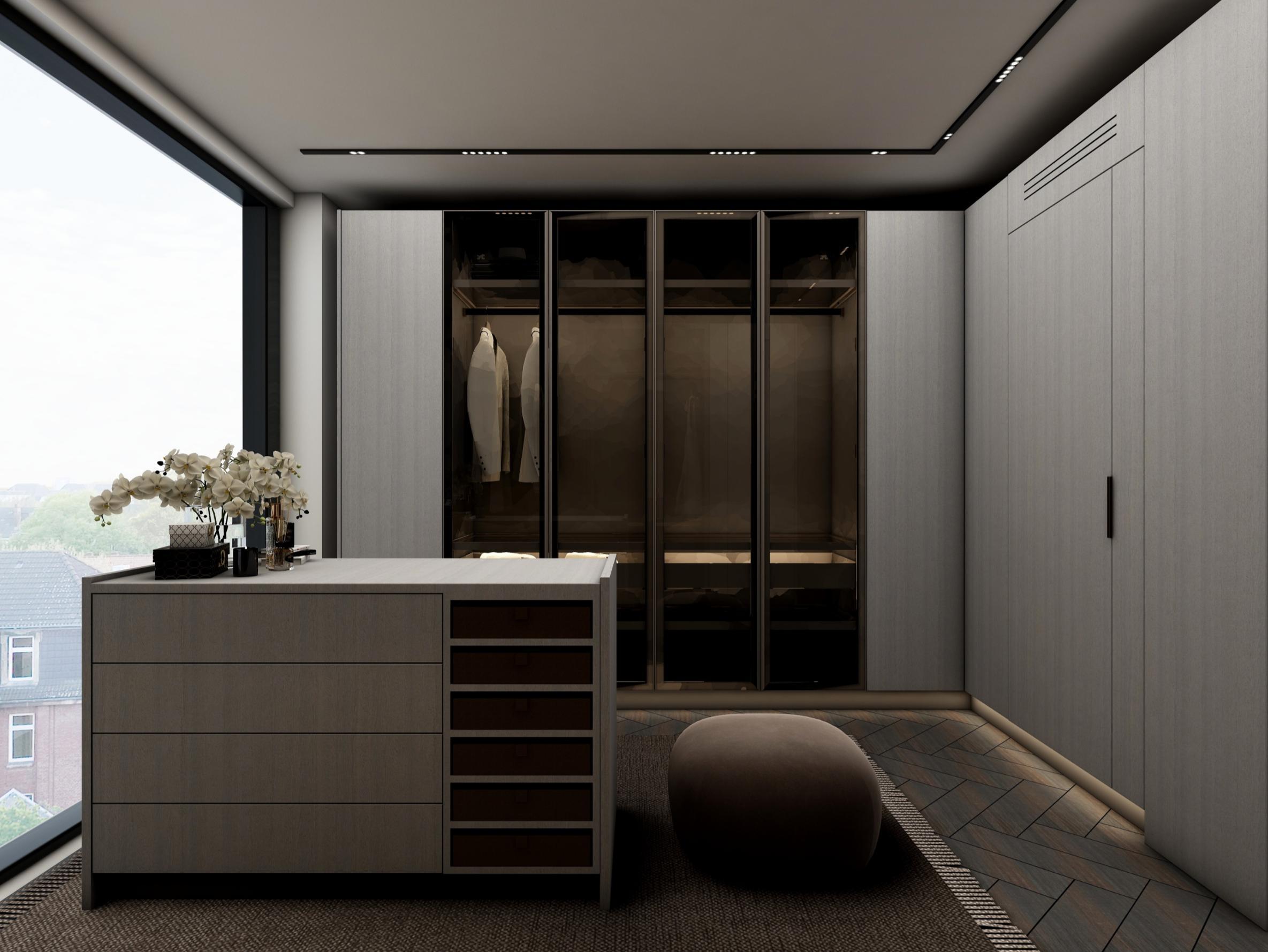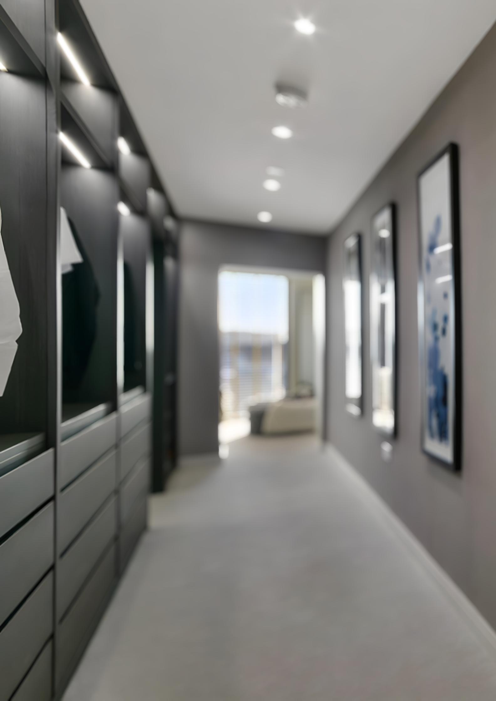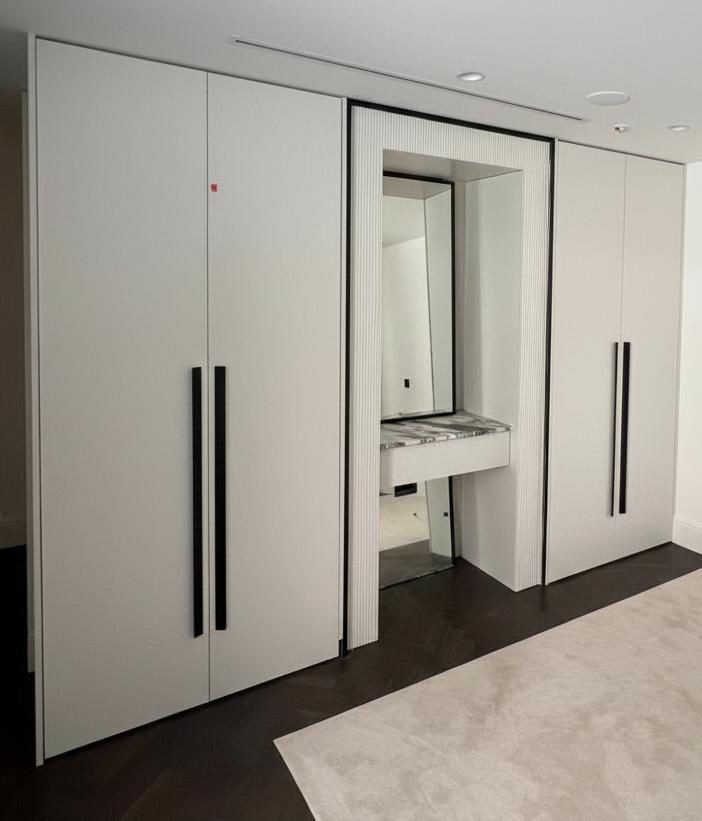 Fully bespoke wardrobes and storage, designed with Italian Salice frames, fluted glass, and cabinetry built to millimetre precision.
