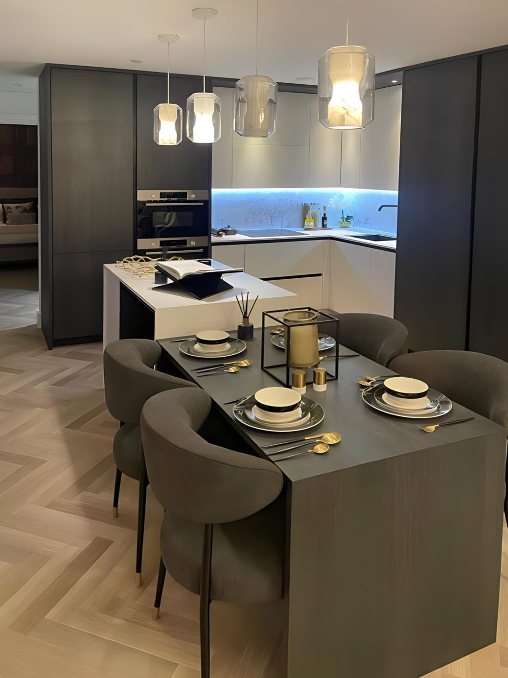 It was within this context the most coveted postcode in the UK that Kitchen Direct Ltd was entrusted with an extraordinary commission: to deliver the complete joinery, stonework, and fit-out for the entire development. An honour, and a responsibility, that we approached with the utmost pride.