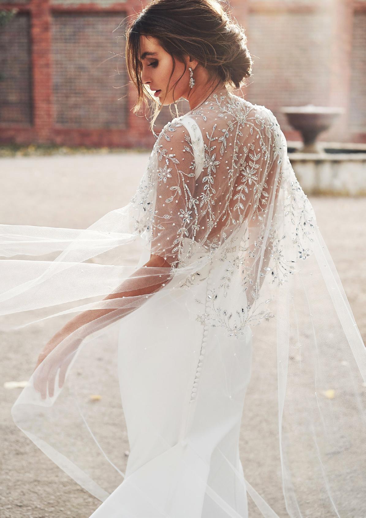 Algunas capas están superpuestas, otras vienen incorporadas en el propio vestido. En ocasiones son mangas que empiezan desde el cuello. La creatividad con este complemento es inagotable y además es una alternativa estilosa frente a cualquier imprevisto climático que puede hacer que la novia se sienta intranquila.