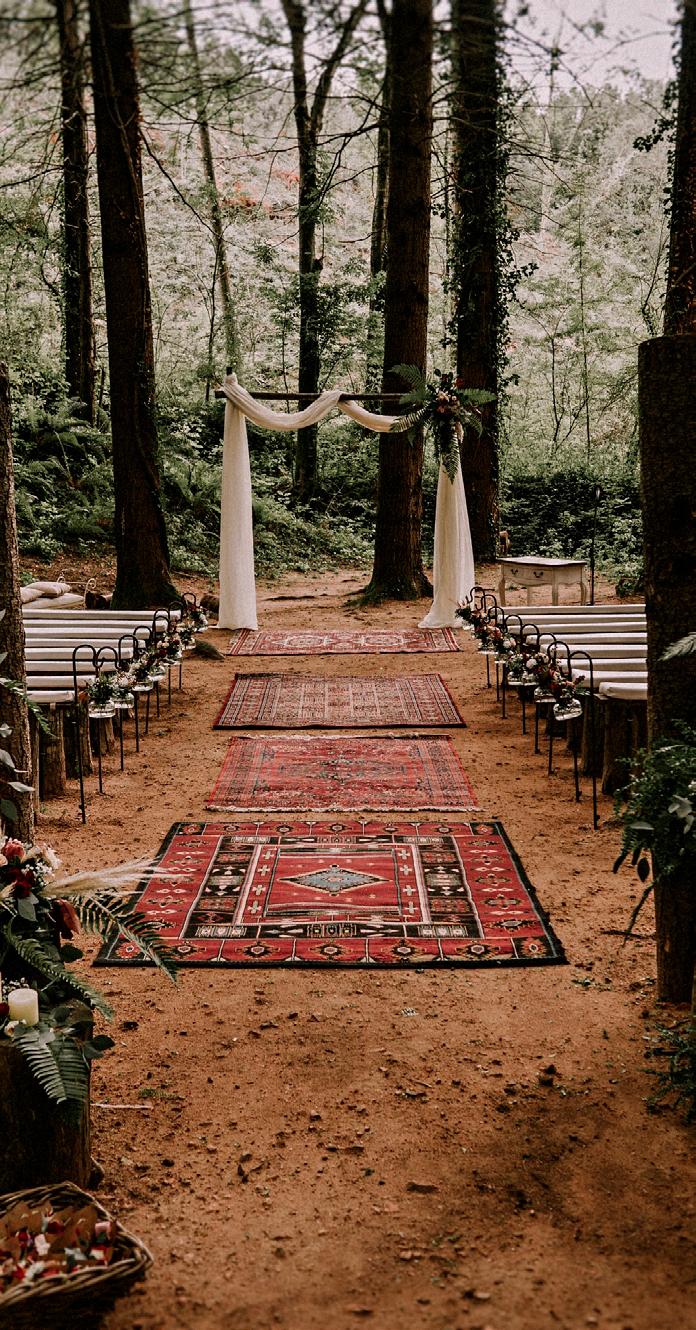 o alfombras estampadas con mucha personalidad y de materiales innovadores. La clásica alfombra de camino al altar se hace a un lado para dar protagonismo a otros elementos.