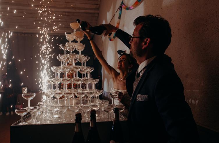 La Champagne Tower vuelve para llenar de glamour las bodas. Otro must del estilo vintage que triunfará en las bodas de 2024 y que hará las delicias de los más nostálgicos. Solo se necesita un buen champagne, copas Pompadour y paciencia para apilar las copas.