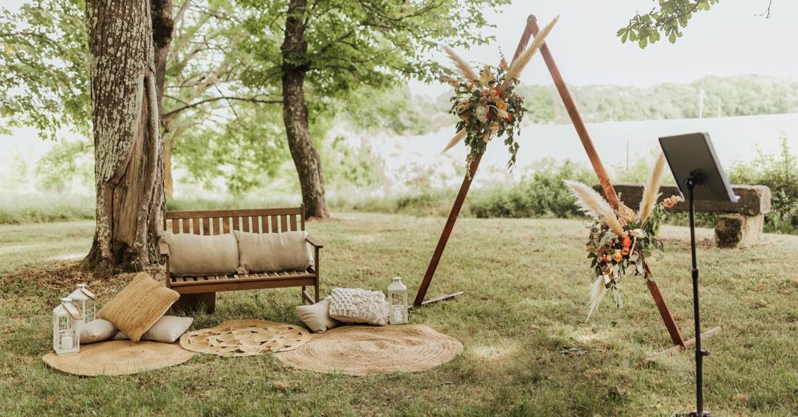 Se utilizarán mucho las pampas, telas y elementos naturales para adornar el arco durante el momento de la ceremonia. Los pasillos además se convierten en uno de los espacios más relevantes de la ceremonia ya que “suceden cosas” más allá de la entrada de la pareja: beer boys, mascotas llevando los anillos, bailes…