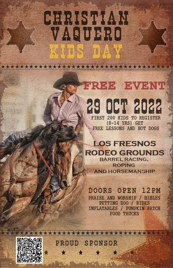 Los Fresnos, Texas — this coming weekend the Los Fresnos Rodeo Grounds will be hosting the first-ever Christian Vaquero Kids day event on Saturday, October 29. Pastor Chad Bresson explains that this is