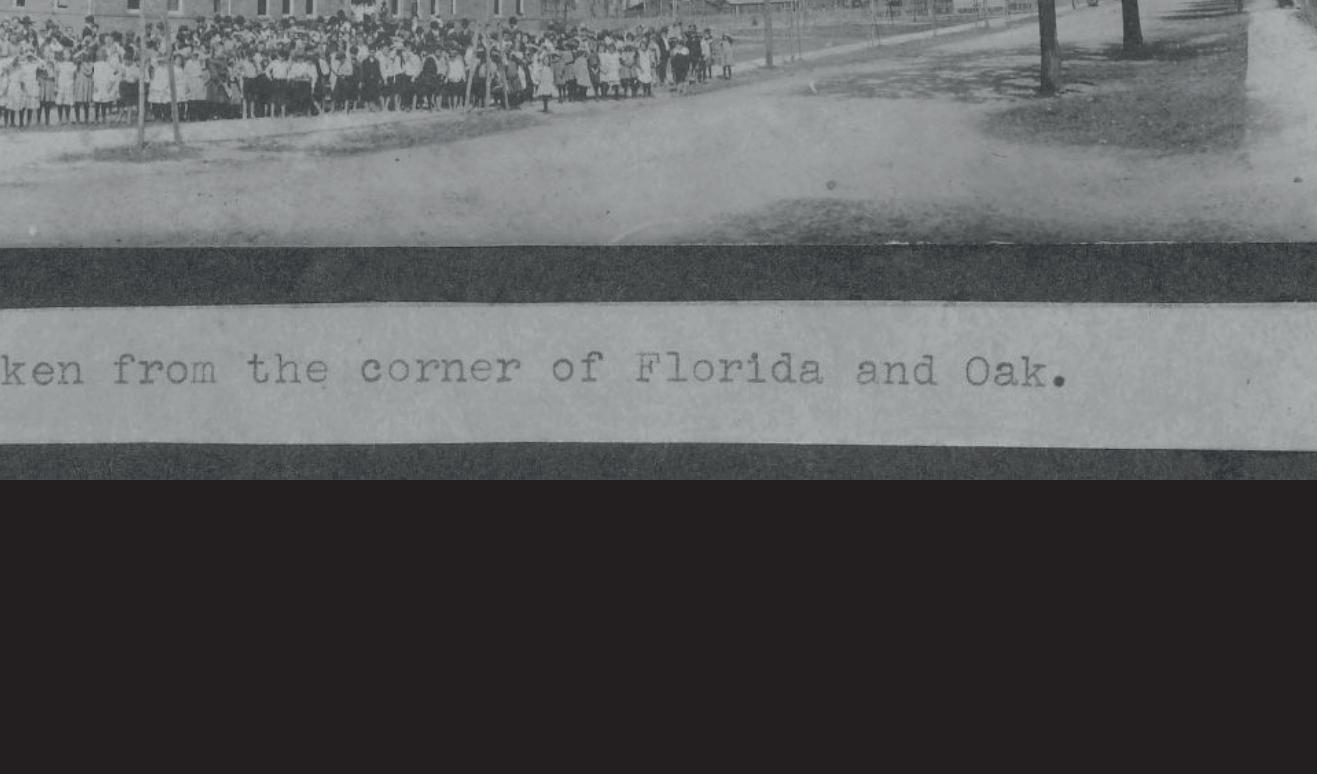 A view of Lakeland High School with the students gathered around the building. Lakeland High School was built on Florida Avenue in Lakeland, Florida in 1902. It served as the city high school until it was replaced by a larger building in 1927. Th e latter building still stands and is now known as Lawton Chiles Middle School.
