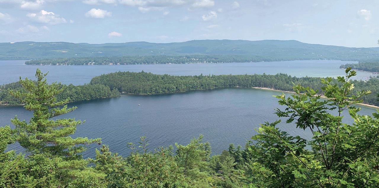 climb, but offers views of Belknap Mountain, the Osceola-Tecumseh region of the White Mountains, and even the eastern end of the Sandwich Range, including Mount Chocorua.
